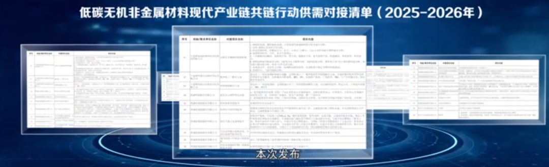 现场由18家玻璃产业上下游企业及科研院所共同发布了《低碳无机非金属材料现代产业链共链行动供需对接清单》,涵盖供需匹配、产业赋能、创新合作、协同配套等46项具体供给需求;还发布了25项新产品、新技术、新装备,集中展示产业链相关企业近期各项成果,加速优秀成果的应用转化和行业推广。