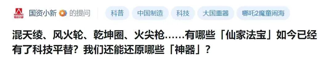 “国资小新”在知乎平台开设话题“有哪些「仙家法宝」如今已经有了科技平替?我们还能还原哪些「神器」?”