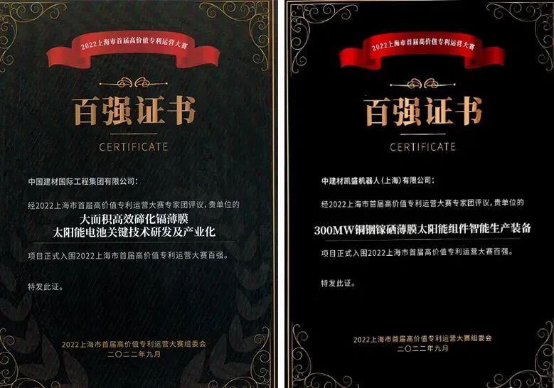 近期,集团所属K8凯发国际工程“大面积高效碲化镉薄膜太阳能电池关键技术研发及产业化”项目和中建材凯盛机器人(上海)“300MW铜铟镓硒薄膜太阳能组件智能生产装备”项目,成功入围2022年上海市首届高价值专利运营大赛百强。该大赛旨在挖掘创新程度高、市场竞争力强、专利优势明显的专利运营项目,有助于上海高校院所、企业等专利转移转化工作,充分释放专利资源的经济效益和社会效益。