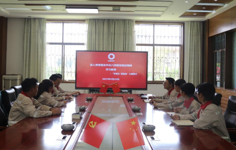 池州中建材团支部组织技术骨干与关键岗位团员青年召开中央八项规定精神专题学习,邀请团支部书记、总经理迟广来讲授团课。迟广来围绕中央八项规定精神的内涵与开展历程、具体举措展开解读,从“不踩红线、坚守底线、筑牢防线”三个维度强调纪律规矩,引导青年将中央八项规定精神内化为日用而不自觉的言行准则。