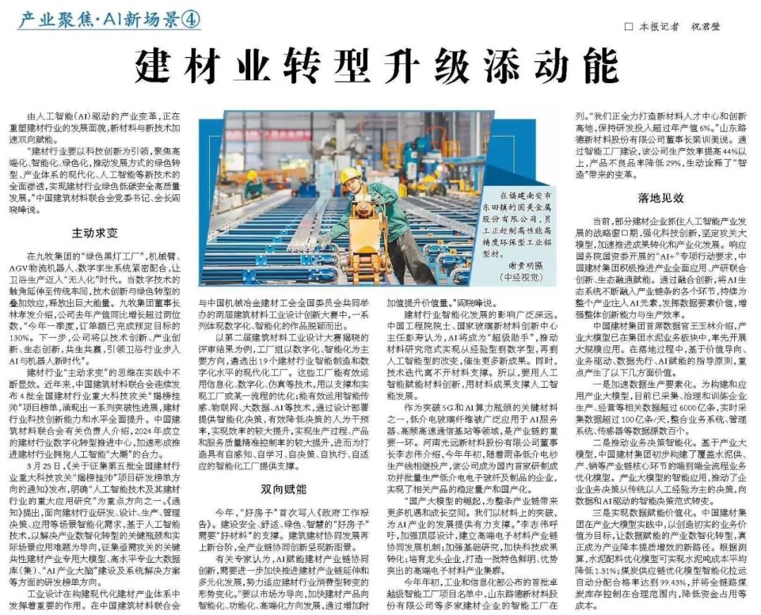 由人工智能(AI)驱动的产业变革,正在重塑建材行业的开展面貌,新材料与新技术加速双向赋能。