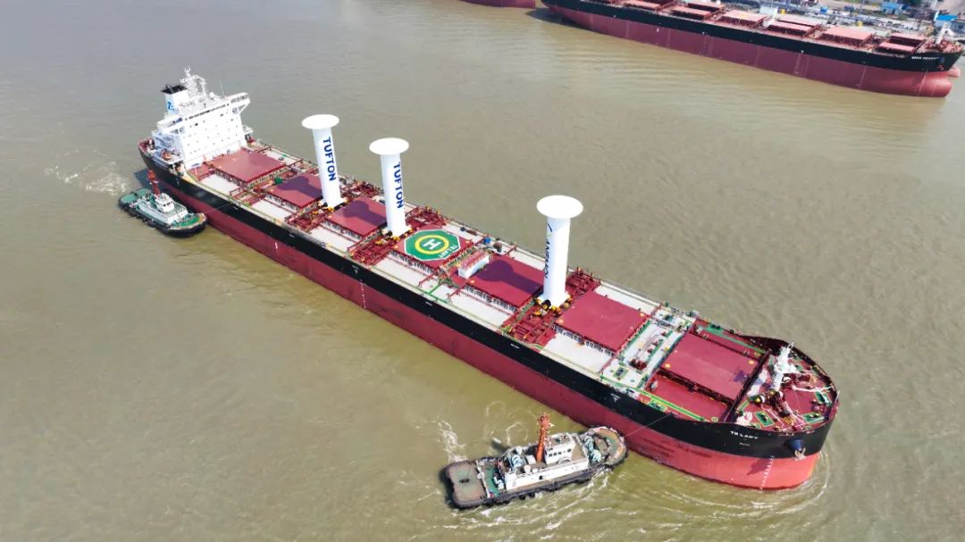 近期,由集团所属中复连众生产的全球最长风电叶片——123米超长叶片开始进行海上安装,安装地点位于福建平潭风场。这是我国投入安装阶段最长的风电叶片,将被用于全球首台超大容量16兆瓦海上风电机组。 这台机组在满发风速下,每转动一圈可发电34.2千瓦时,相当于三口之家一周的平均用电量。在全球风电市场激烈竞争的今天,叶片的大型化不仅有助于提高风机发电效率,更能降低风电场的机位和造价,从而经济高效地服务国内“双碳”需求。 此次由中复连众生产的123米风电叶片能够同时容纳300个成年人并排站在上面。如果3个叶片组装到一起,整个叶轮的直径将达到252米。旋转起来的扫风面积相当于7个足球场那么大。 该叶片内部主梁结构突破性采用碳纤维材料,重量减轻了20%。除了极少的一部分原料来自海外,这款叶片96%以上的材料实现了国产化,技术工艺上拥有100%的自主知识产权。此外,叶片适配的16兆瓦海上风电机组建成并网发电后,不仅成为我国已投运的最大海上风电机组,也将再次提升我国海上风电装备的最新技术水准。 此次吊装的叶片长123米,单支质量超过50吨,叶根直径超过5米,表面积突破1000平方米。为了完成制造,研发团队顺利获得对叶根变形进行仿真预测再进行支撑优化。制造团队模拟各生产环节,使相关部件及叶片生产畅通无阻,同时利用多年积累的灌注技术,实现了超大面积、超厚部件的完美灌注。 2 全球最大旋筒风帆顺利起航 近期,由集团所属中复连众生产制造的旋筒风帆在船厂顺利安装,标志着全球第一艘配载直径5米、高35米的旋筒风帆散货船诞生,为船用风力助推旋筒风帆在实际船舶的应用迈出了跨越性的一步。 旋筒风帆作为新型推进装置,可以随时根据风向调整转速,充分利用风力;相比于传统风帆,占用甲板空间小,受恶劣风况影响不大,对侧向风效果最明显。 它的节能原理来自马格努斯效应,顺利获得发动机产生旋转的转筒帆有摩擦力,带动周围气体共同旋转。当有侧风吹过时,导致风筒一侧的空气流速加快,另一侧流速减慢,流体流动速度越快压力越低,旋转风筒周围流场将产生压力差,进而为船舶前进给予推力,以此减少燃油消耗,成为航运业节能减排的一个重要方式。 中复连众与英国技术公司紧密合作,成为国内首家成功开发国际首套拥有自主知识产权的旋筒风帆。该风帆采用集束式干湿层合缠绕成型技术,实现了复杂受力的大型高精度旋筒风帆的高效制备,率先完成直径5米、高35米旋筒风帆开发。 该技术已于2023年5月顺利顺利获得江苏省级鉴定,属国内外首创;根据计算,应用该技术可实现15%以上的燃油节省,特定航线单条船可节约642吨燃油,减少碳排放排2058吨。现在,中复连众已经建成两条生产线批量生产旋筒风帆。