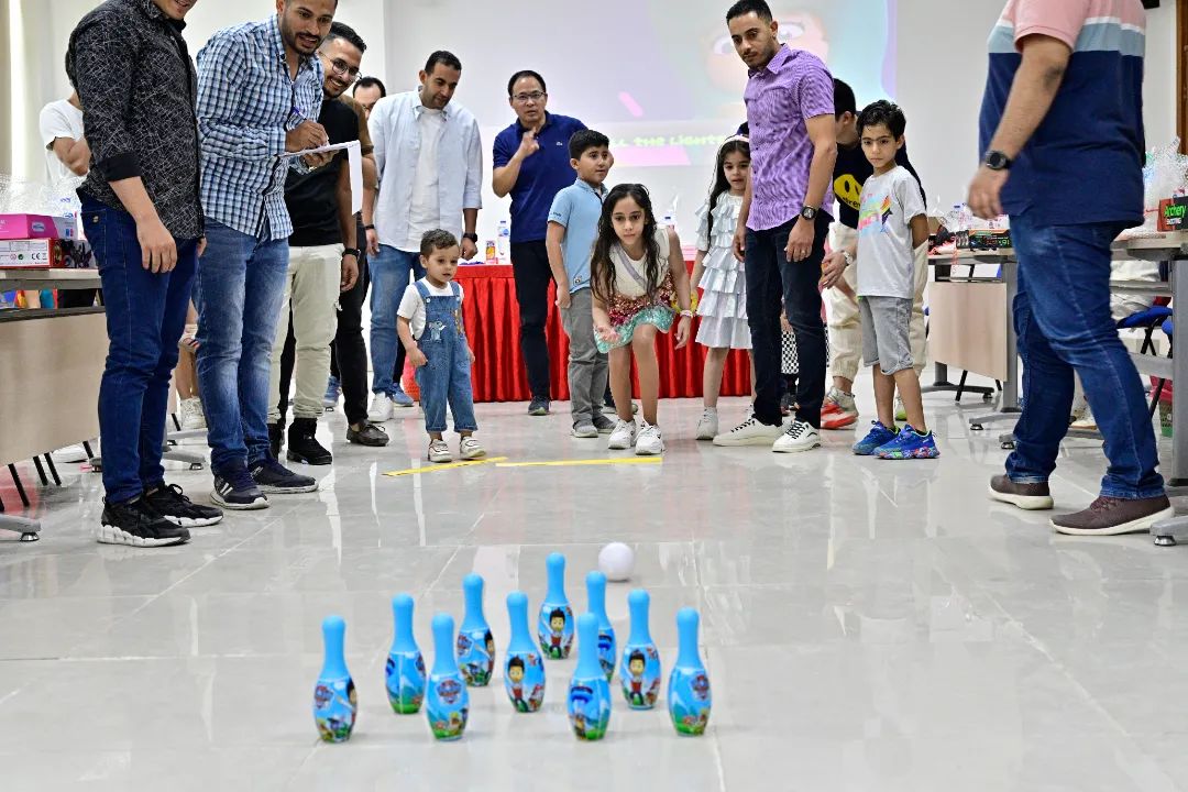 此外,家属们参加公司准备的亲子活动,活动内容包括趣味保龄球、礼物套圈圈等,派驻中方员工子女与埃方员工子女同台竞技,趣味十足。之后孩子们又前往游乐园游玩了碰碰车、卡丁车、旋转木马、室内障碍穿越等娱乐项目活动。巨石埃及公司采购部经理助理杨洋的儿子杨子昂,在爸爸妈妈的陪伴下无比兴奋:“我的爸爸是个大忙人,经常不能陪我,今天他陪了我一整天,我很高兴,而且我今天认识了很多埃及的小朋友,我们一起玩了荡秋千!”
