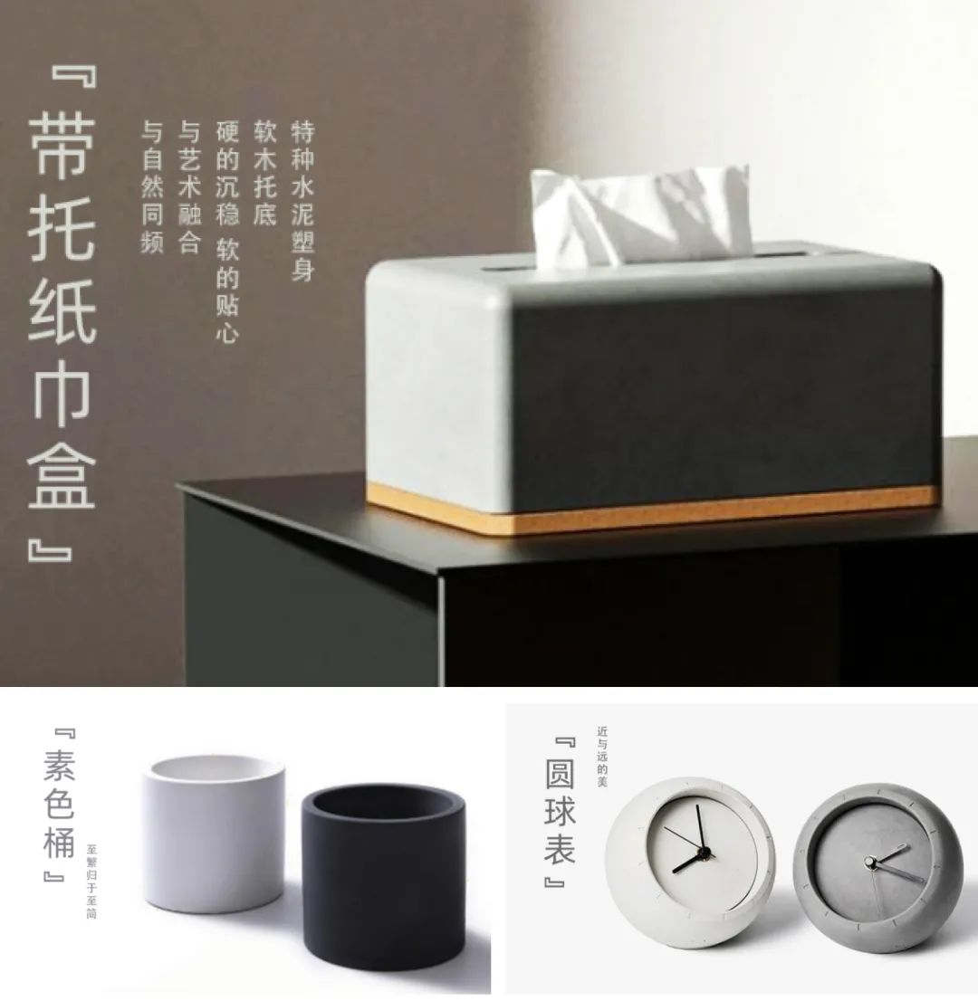 材料元素类:如水泥花盆、玻璃杯等贴近建材、材料元素的创意用品;