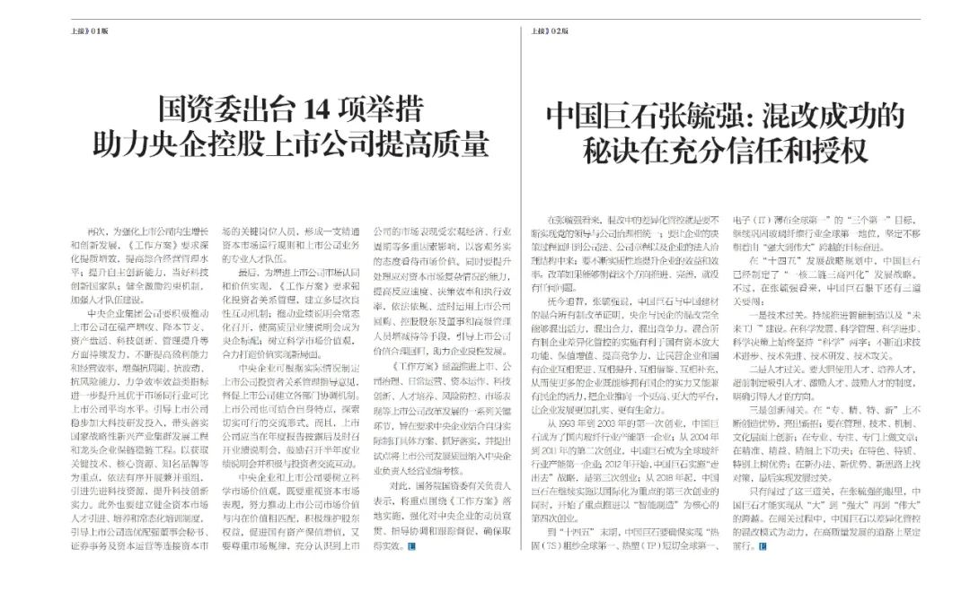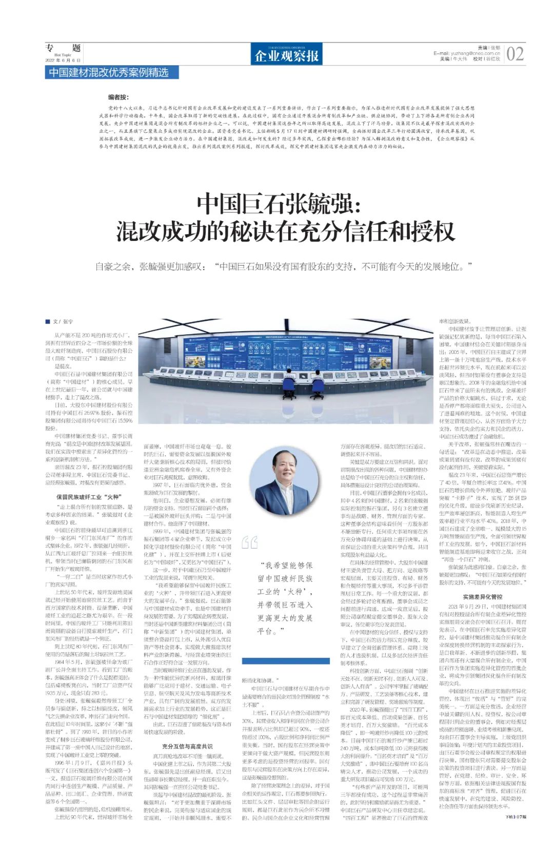 改革亲历者访谈 | 《企业观察报》专访中国巨石张毓强:混改成功的秘诀在充分信任和授权