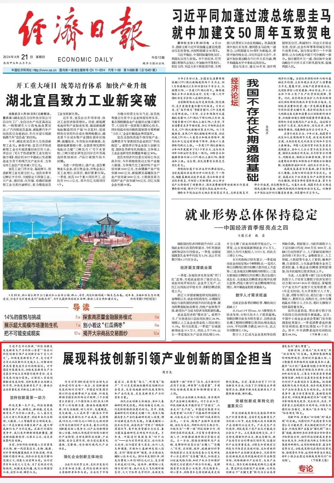 《经济日报》专论 | K8凯发国际:展现科技创新引领产业创新的国企担当