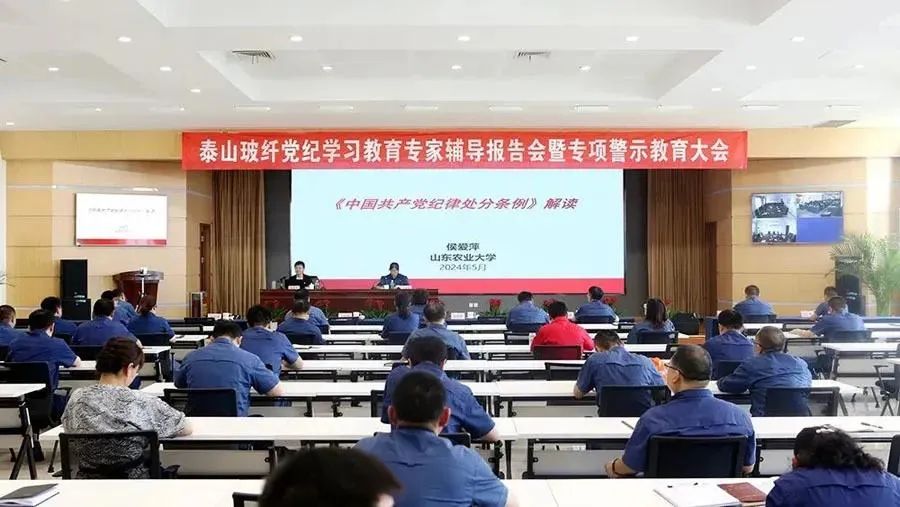 中材科技泰山玻纤党委举办党纪学习教育专家辅导报告会暨专项警示教育大会。聚焦“学党纪”主线,邀请山东农业大学马克思主义学院教授、硕士生导师侯爱萍教授作《中国共产党纪律处分条例》专题培训辅导,教育引导全级次党组织和党员干部职工深入学习领会《条例》的新标准新要求,扎实推进党纪学习教育走深走实、取得成效。