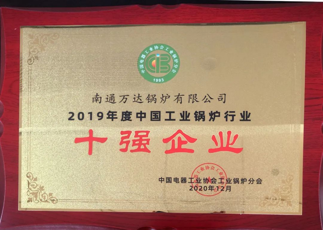 近期,在上海召开的主题为“新时代、新格局、新思路、新模式”的中国电器工业协会工业锅炉分会七届三次会员大会暨2020中国工业锅炉行业开展高峰论坛上,中材节能所属南通万达锅炉有限公司再次荣获中国工业锅炉行业“十强企业”“出口创汇先进企业”和“新产品开发明星企业”三项荣誉称号。