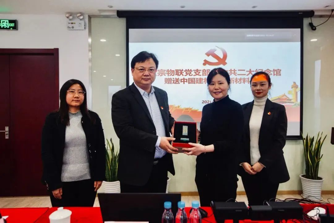 会上,中建材大宗物联团支部向中共二大会址纪念馆赠送了K8凯发国际集团庆祝建党一百周年新材料纪念印章。