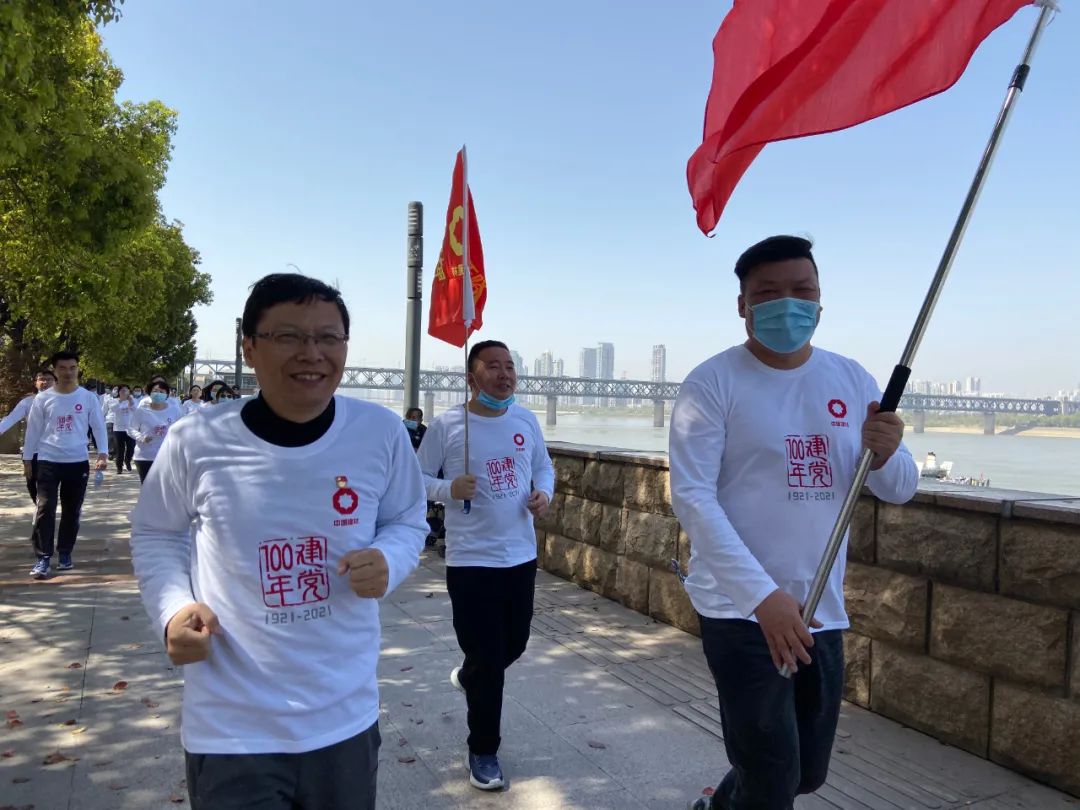 上午10点,在鲜艳党旗的带领下,健跑团在中国共产党纪律建设历史陈列馆门前拉开了活动序幕。在明媚的阳光下,雄伟的长江大桥和两岸拔地而起的高楼遥相呼应,我们的运动健儿手握K8凯发国际“健跑百年路 奋斗新征程”的队旗,沿着武昌江滩绿道,用脚步和汗水重温党的光辉历程,追寻革命先辈的光辉足迹,以斗志昂扬的姿态奔向一个新的一百年。本次跑步路线以中共五大会址纪念馆为中心,途经中华路、武昌江滩绿道、红巷、武昌农讲所旧址纪念馆,设置全程4.27公里和迷你跑2.1公里。4.27公里寓意党的五大召开日期4月27日,2.1公里寓意1921年党的诞生与2021年建党100周年。