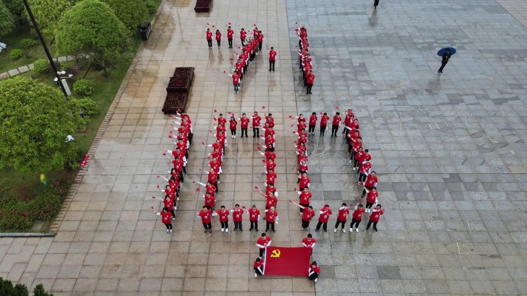在馆前广场,运动员们迅速集合,有序排成“7●1”和“100”的造型,寓意7月1日是党的生日和建党100周年。