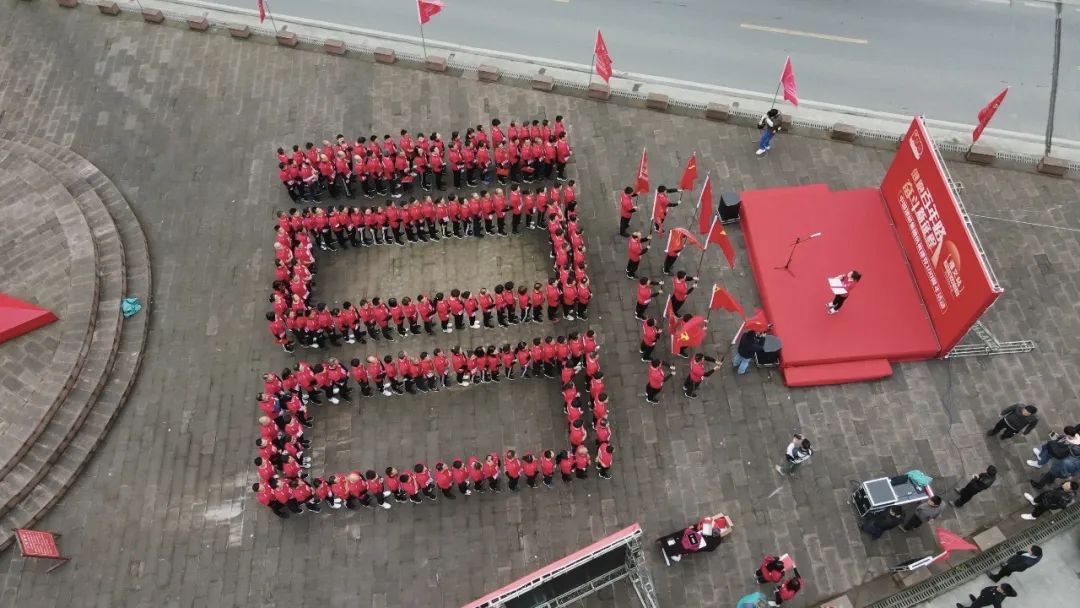 活动于上午9时准时开始,全体人员按照“100”的字样列队,向建党100周年献礼。