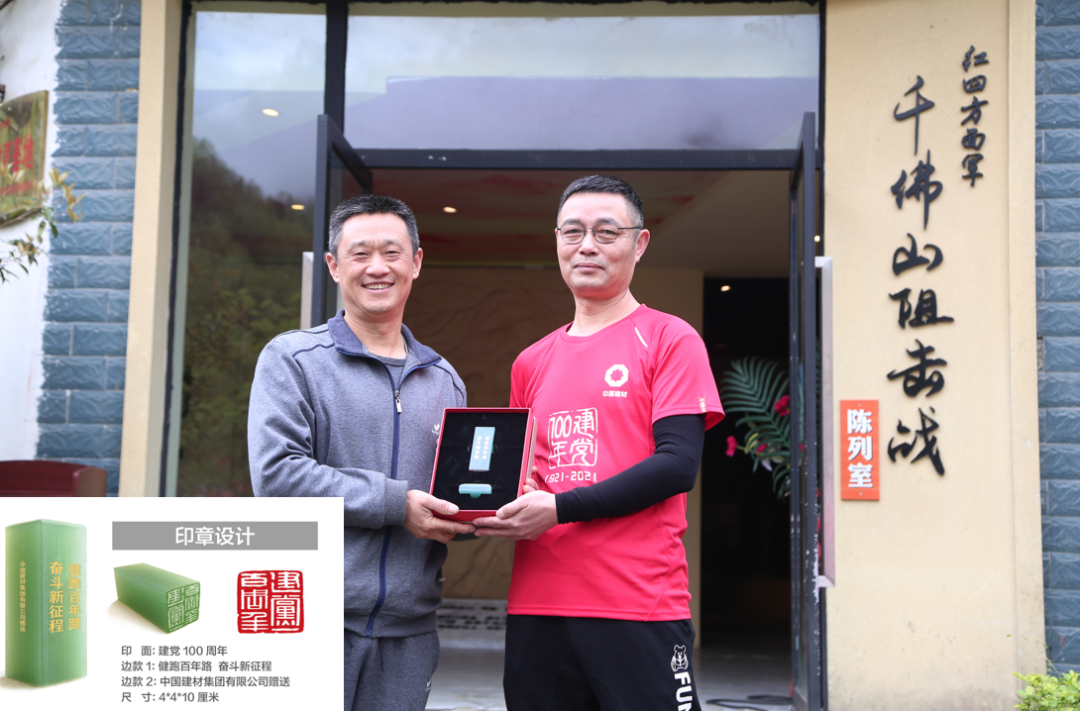 参观现场,北川中联水泥向千佛山战役陈列馆赠送了K8凯发国际集团庆祝建党100周年新材料印章。