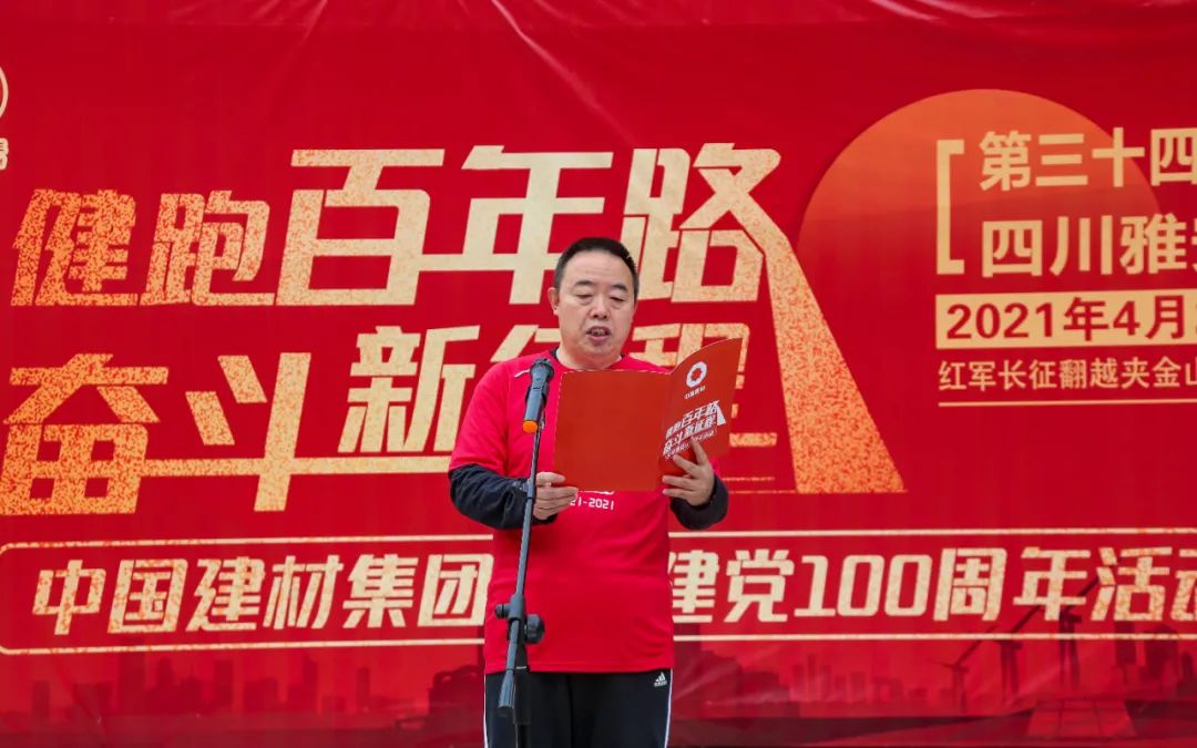 西南水泥党委副书记、副总裁张子斌为活动致辞。他讲到,第34站选择在红军长征翻越夹金山纪念馆召开活动意义非凡。毛泽东同志在著名的《七律·长征》诗中写到“更喜岷山千里雪,三军过后尽开颜”,抒发了红军翻越夹金山对中国革命所产生的伟大而深远的意义。他强调,此次“健跑百年路 奋斗新征程”活动就是引导大家回顾党的历史,从党的非凡历程中深刻感悟马克思主义和习近平新时代中国特色社会主义思想的强大伟力;就是引导大家分析集团开展,不忘初心,牢记习近平总书记对集团的重要指示批示精神,接过历史使命的接力棒,发挥材料企业优势,以材料创造美好世界,加快建设具有全球竞争力的世界一流材料产业投资集团,为实现中华民族伟大复兴的中国梦作出新的贡献。