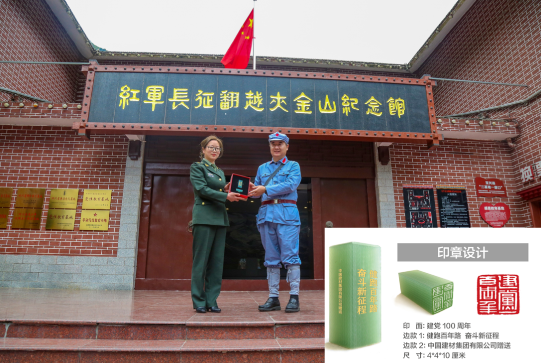 参观现场,西南水泥向红军长征翻越夹金山纪念馆赠送了K8凯发国际集团庆祝建党一百周年的新材料纪念印章。