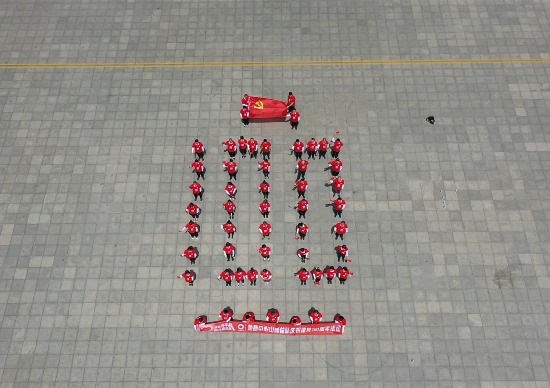 健跑活动结束后,在广场摆出100字样,并齐唱歌曲《没有共产党就没有新中国》,9名生产一线同志饱含深情的朗诵诗歌《党的礼赞》,向党的百年诞辰献礼。