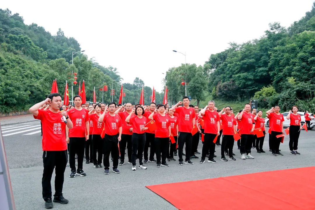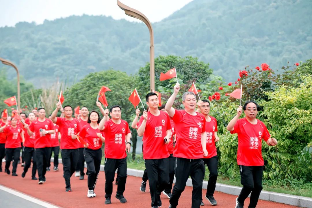 本次健跑活动在重庆铜梁饮水源地邱少云纪念馆附近的玄天湖举行,活动里程为2.1公里和7.1公里,“2.1”寓意纪念1921年建党和2021年建党100周年,“7.1”寓意党的生日。顺利获得朗诵郭沫若诗歌《咏邱少云烈士》、重唱《中国人民解放军志愿军军歌》和音乐微党课,让全体党员干部员工深刻感受到,今天美好生活是在中国共产党正确领导下,无数革命先烈抛头颅、洒热血换来的,非常不易。