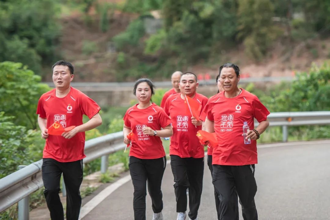 本次健跑活动在黄继光故居举行,全程2.1公里,寓意1921年中国共产党的诞生和2021年中国共产党的百年华诞。顺利获得诗朗诵《英雄塑像前的沉思》,合唱《我和我的祖国》,进一步激励党员干部员工坚定理想信念,把学习成果转化为工作动力和成效,真正理解领会到“党员要平常时候看得出来、关键时刻站得出来、危急时刻豁得出去”的含义,以良好的精神风貌和优异的经营业绩迎接建党100周年。
