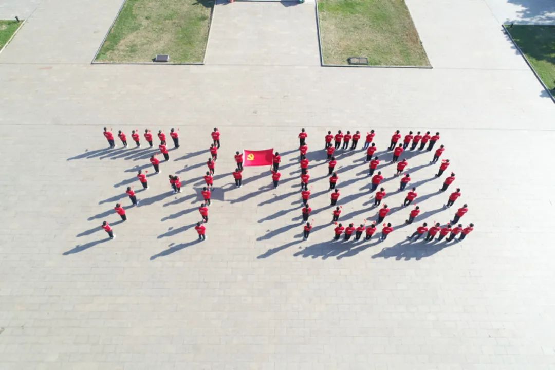高举党旗摆出“7.1”“100”字样,合唱《没有共产党就没有新中国》,庆祝建党100周年