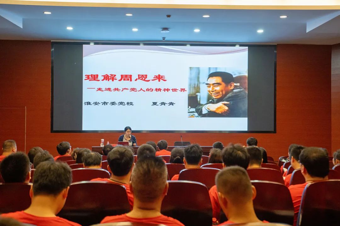 参观结束后,全体人员在主馆礼堂聆听了《理解周恩来——走进共产党人的精神世界》专题党课。党课从“什么是信仰,信仰的力量”“马克思主义信仰组织的特点”“总理为什么能坚守信仰”三个方面系统阐述了周总理所代表的共产党人精神,特别是矢志不渝对群众观念和组织观念的坚守。