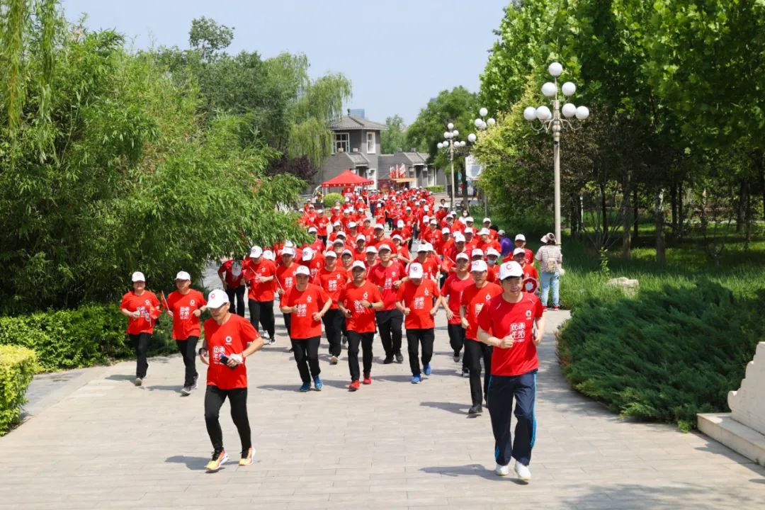 全体队员精神抖擞、意气风发,共同踏上健跑之旅。本次健跑活动路线全长2.1公里,“2.1”寓意1921年建党和2021年建党100周年。矫健的步伐、灿烂的笑脸、飘扬的党旗,绘成了一道亮丽的风景线,展现了建材人昂扬向上、拼搏进取的精神风貌。队员终点冲刺后,在终点签名墙上签字打卡留念。
