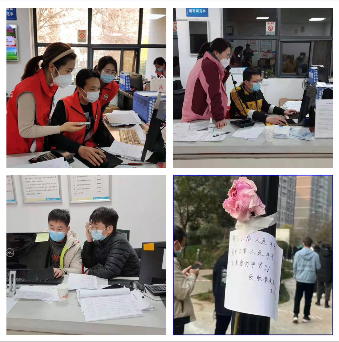 社区工作人员、医护人员和西安墙材院的志愿者们