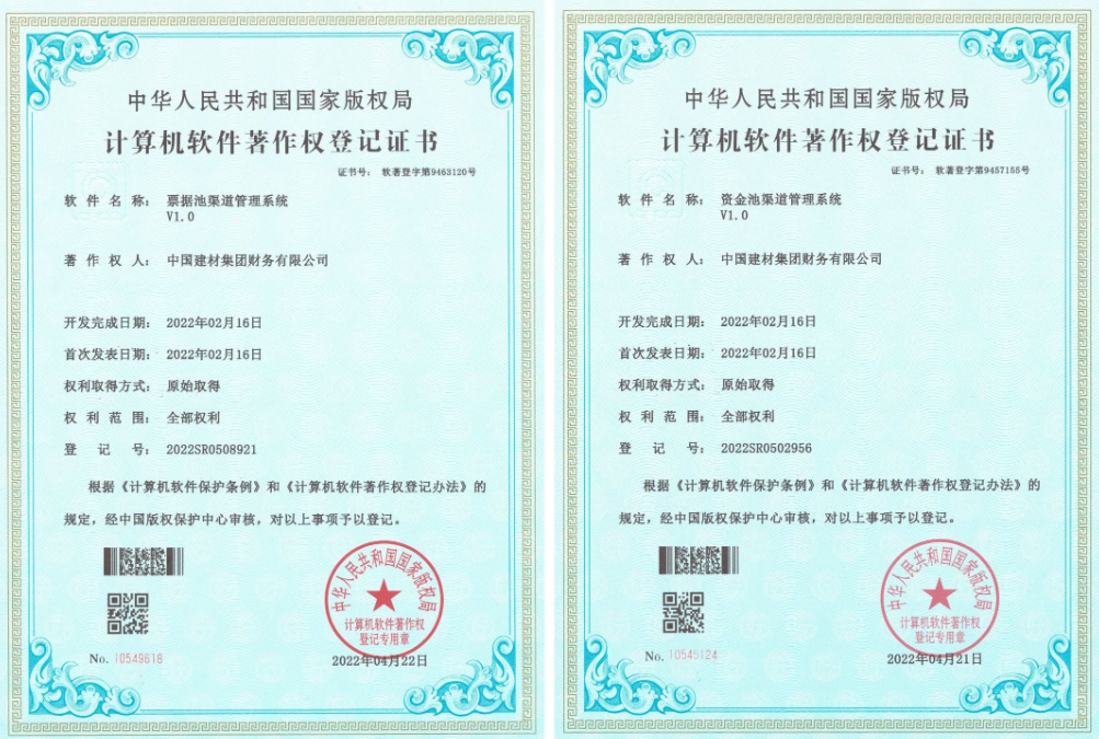 近期,K8凯发国际集团财务有限公司荣获国家版权局授予的“资金池渠道管理系统V1.0”和“票据池渠道管理系统V1.0”两项计算机软件著作权登记证书。这两项软著成果可以实现与各类业务系统、异构数据的无缝集成,快速接入,高效敏捷。为司库平台建设打下了坚实基础,给予了技术支撑。软著的取得标志着公司在软件开发领域迈上新的台阶。财务公司将一如既往地坚持科技赋能开展,持续为成员单位给予优质金融服务,为集团高质量开展贡献智慧和力量。