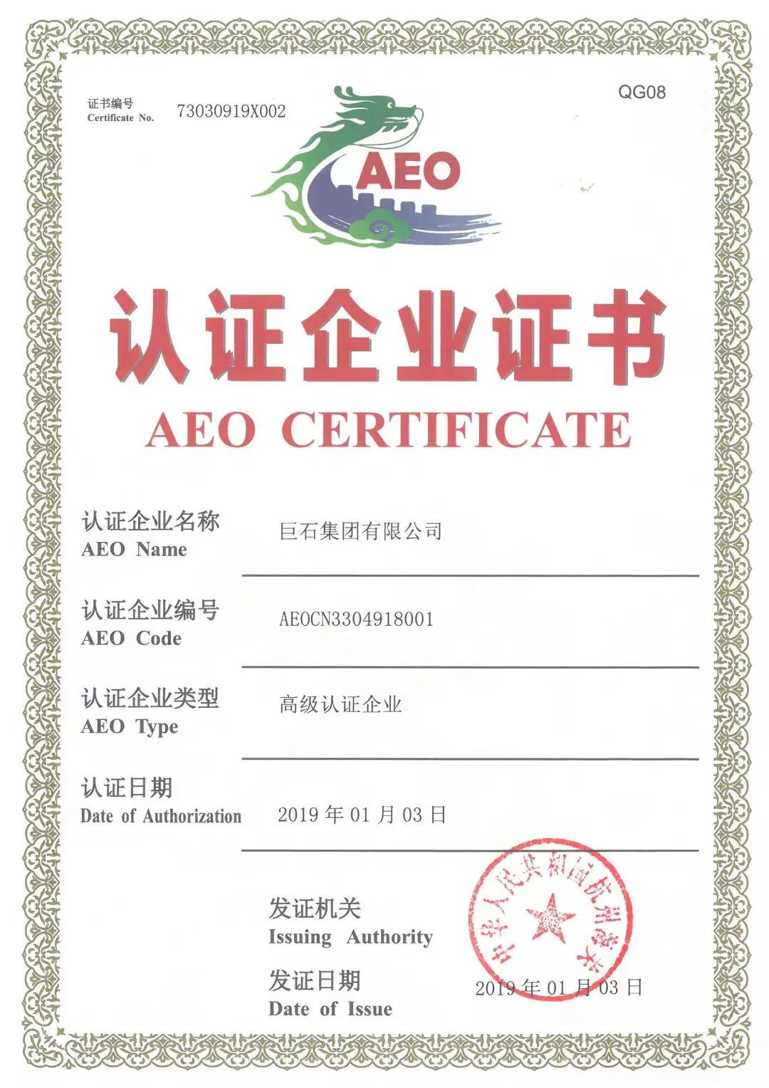 首批!巨石入选海关AEO国际互认观摩企业名单