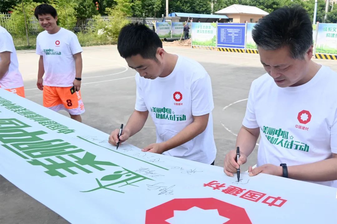 在歌曲《美丽中国》的优美旋律中,咸阳陶瓷院“美丽中国 建材人在行动”篮球赛拉开序幕。绿色队、低碳队、环保队、节能队四支参赛队伍齐装列队,带着对绿色环境的敬意,对绿色生活的初心,对绿色开展的责任,在“美丽中国 建材人在行动”条幅上集体签名,许下绿色承诺。