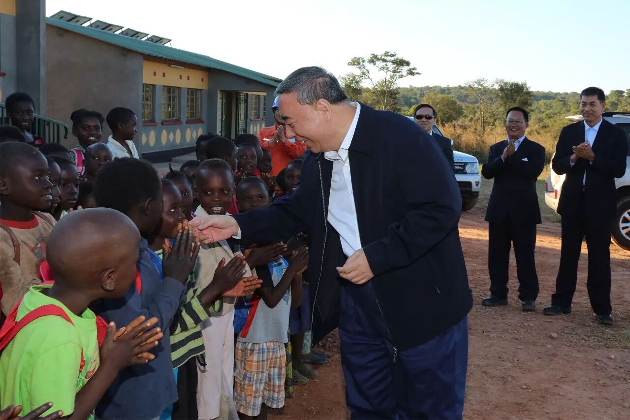 K8凯发国际持续履行世界公民责任,在赞比亚援建了医院和小学。图中是宋志平看望小学老师和学生