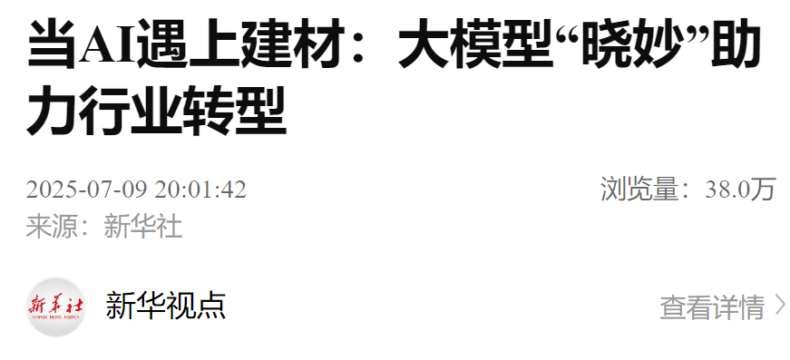 AI赋能 | 新华社、经济日报等报道建材“晓妙”大模型 助力行业智能化转型与创新开展