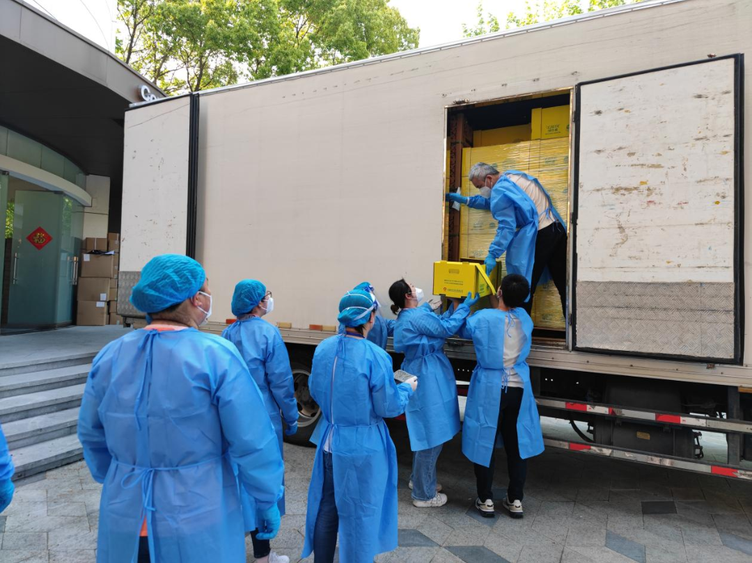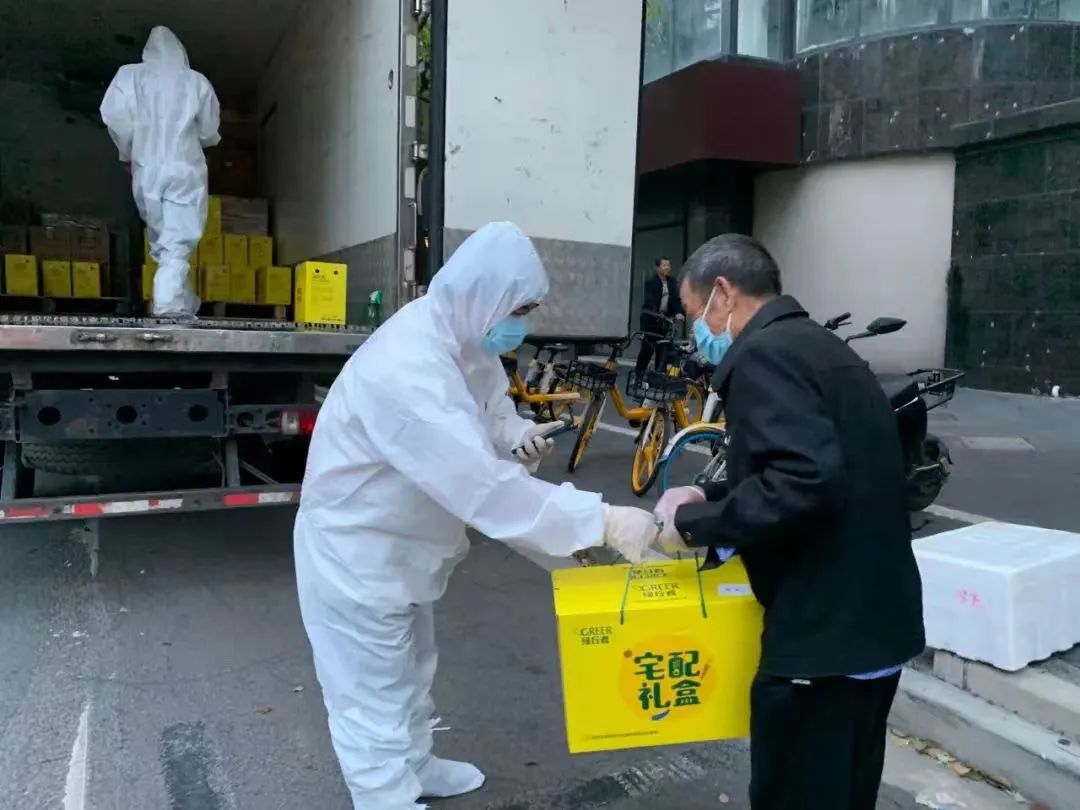 上海基地全体管理人员在刘元军的带领下支援车间生产、外出跟随蔬菜配送。每天一早处理完手头工作,便穿上防护服跟随物流车辆进行配送,在路上继续安排路线、联系客户收货、搬运货物。防护服穿脱不便还闷热,他们不敢多喝水,更没时间吃饭,从凌晨五点开始备货、装车、送货,不断持续到第二天凌晨两三点。每日向市场供应“绿行者”品牌果蔬4万余份,除供应各大商超及线上平台外,在多个小区召开团体配送,确保新鲜果蔬当天端上市民餐桌。